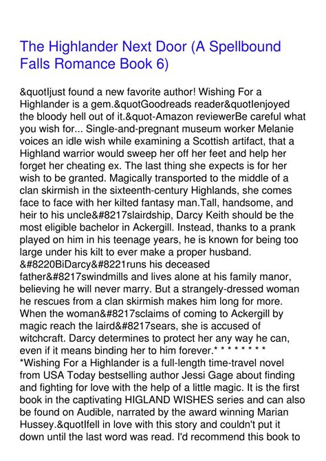Read Online the highlander next door spellbound falls PDF online is a convenient and frugal way to read the highlander next door spellbound falls you love right from the comfort of your own home. Yes, there sites where you can get PDF "for free" but the ones listed below are clean from viruses and completely legal to use.